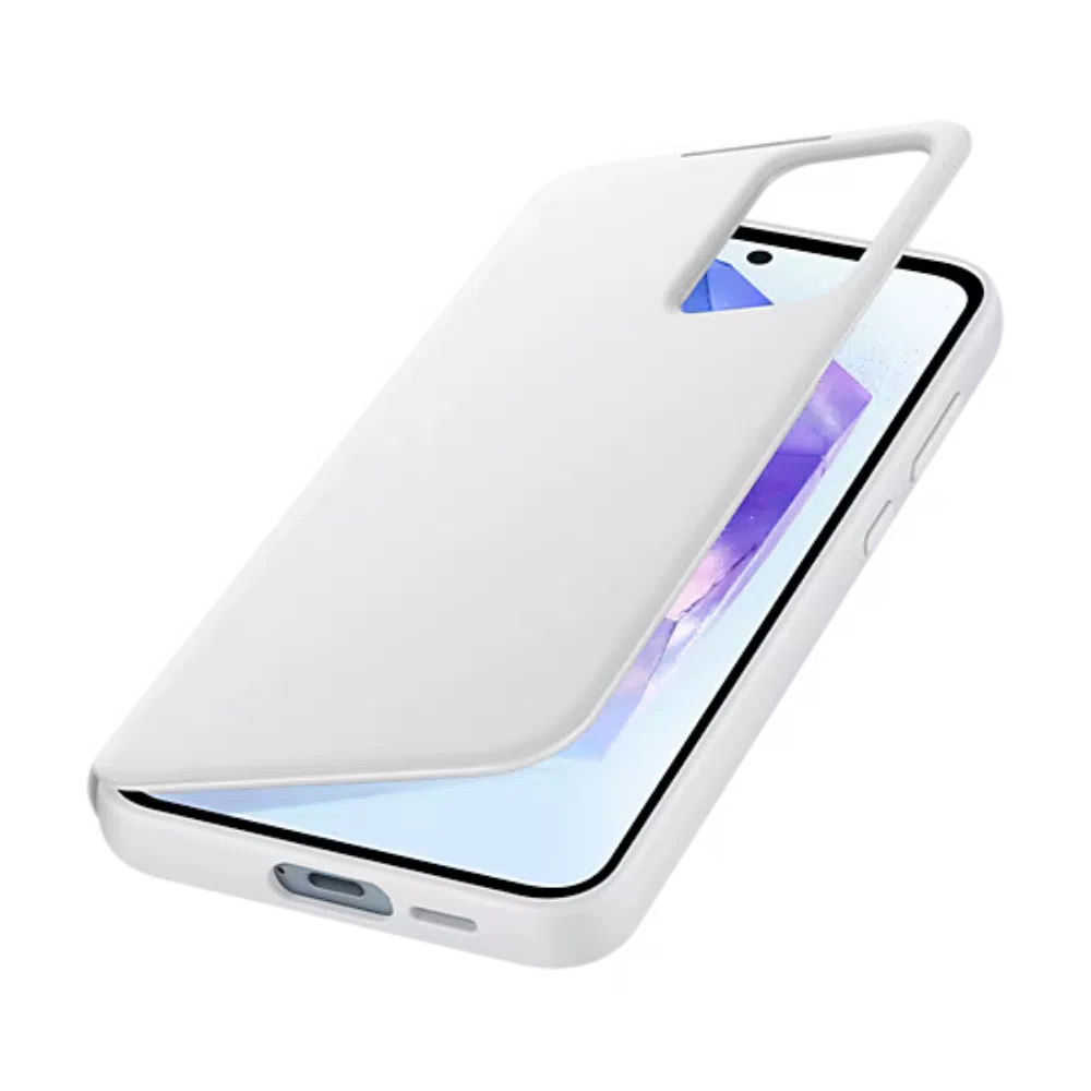 Samsung Galaxy A35 5G Smart View Wallet futrola u beloj boji kombinuje zaštitu, funkcionalnost i stil. Sa Smart View prozorom možete pregledati vreme, obaveštenja i kontrolisati muziku bez otvaranja futrole. Takođe ima skriveni džep za karticu, štiti ekran i ivice, i omogućava čist i elegantan izgled uz jednostavan pristup portovima, kamerama i dugmadima.